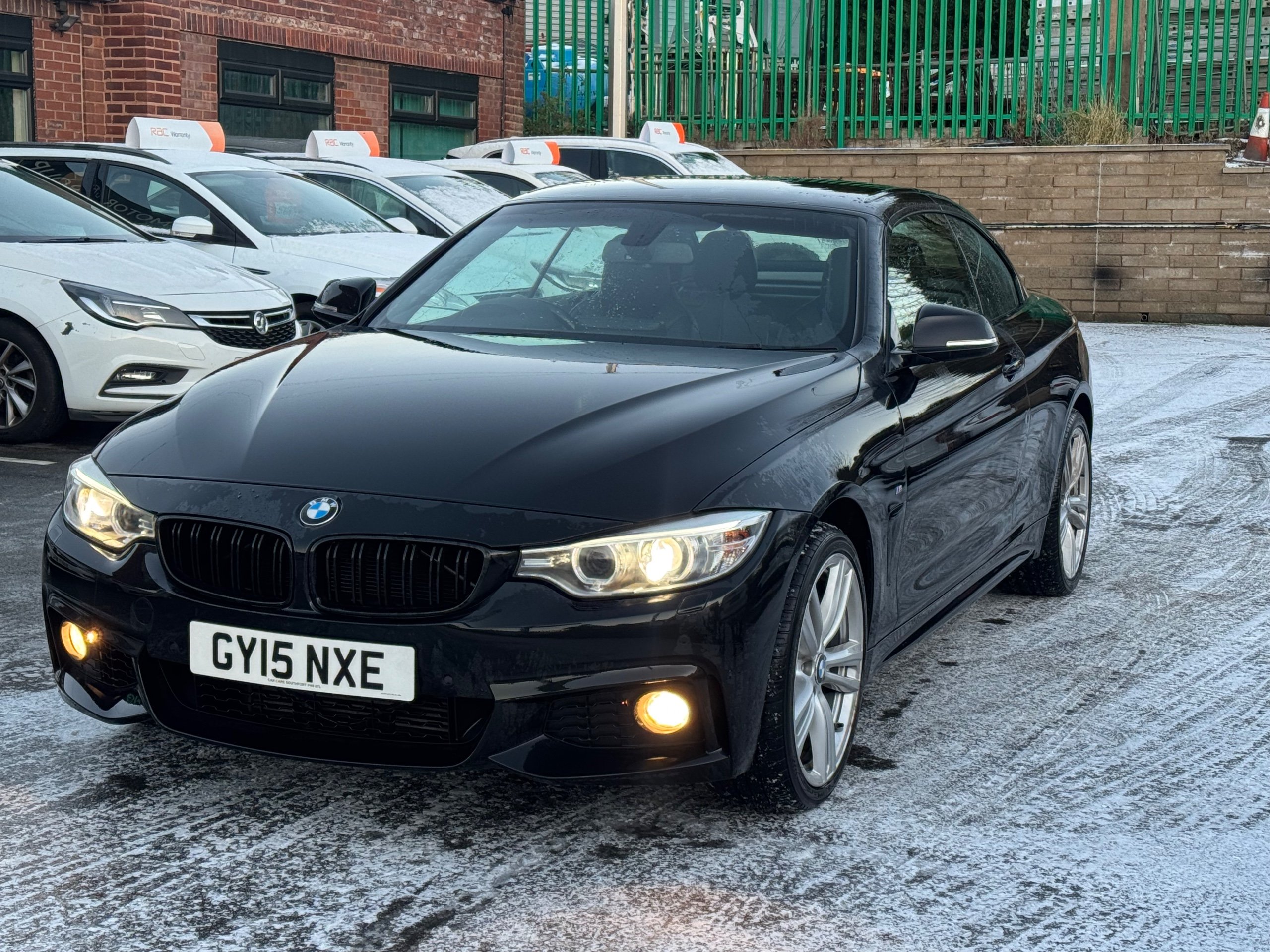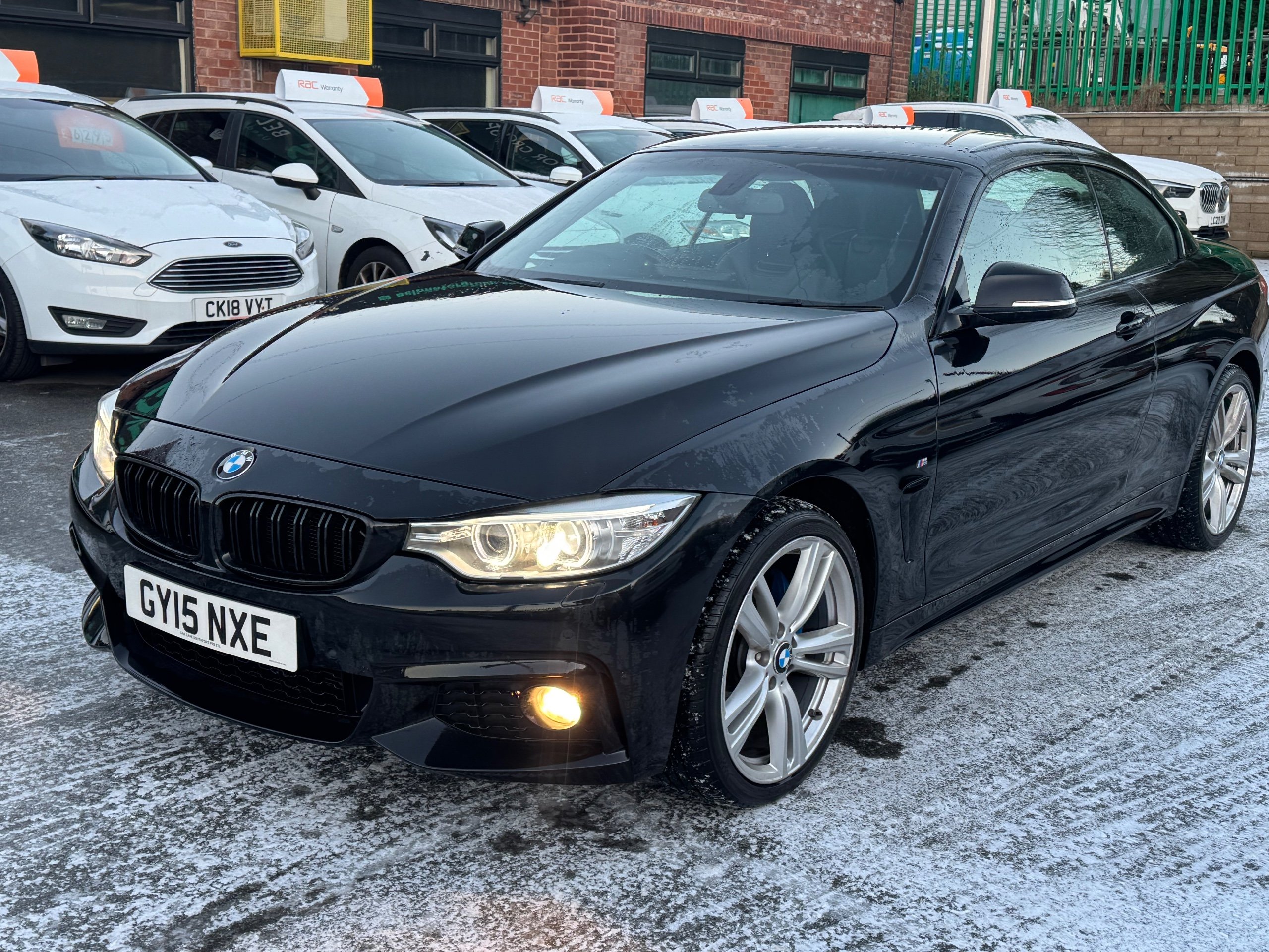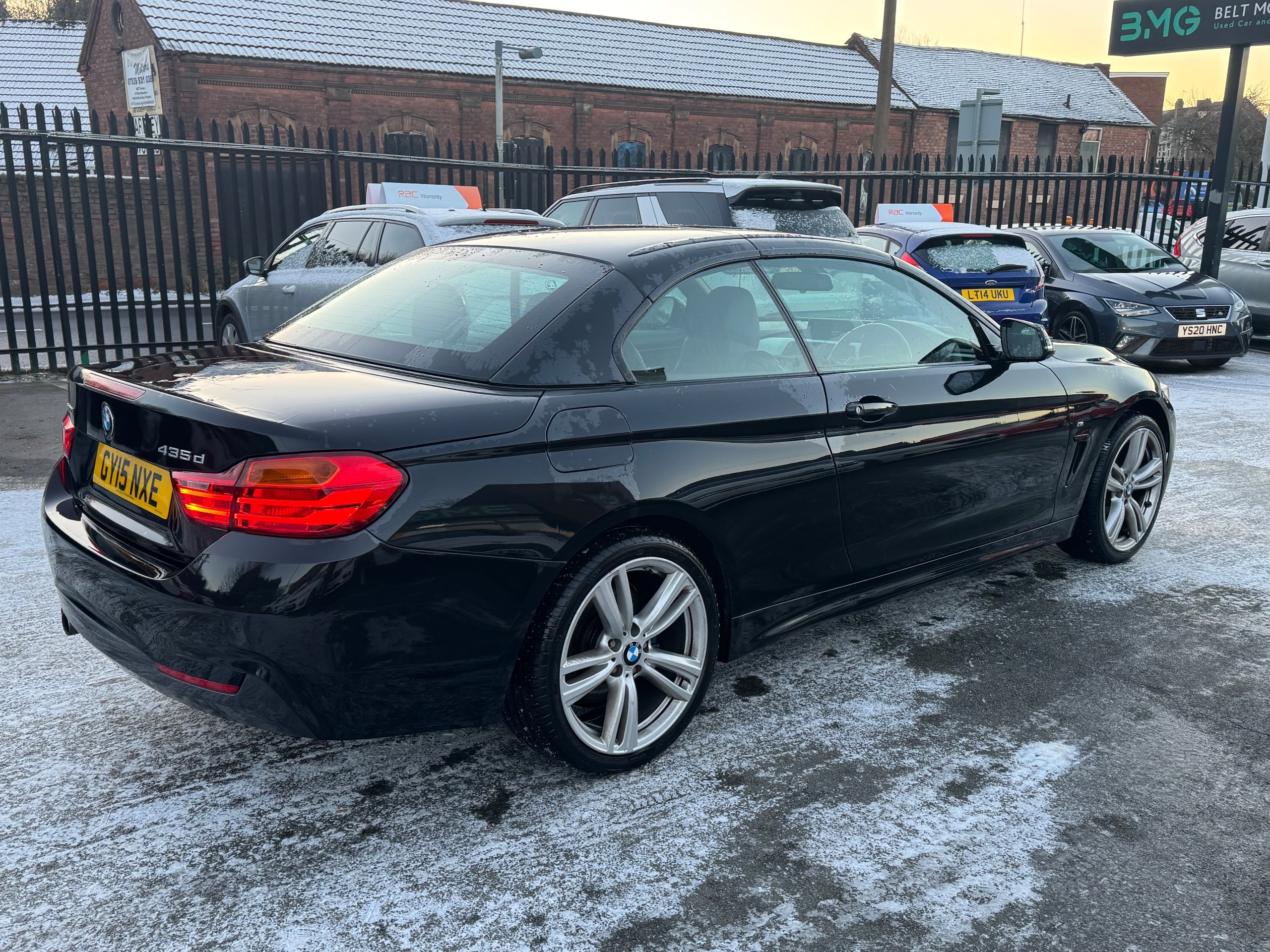 INDOOR HEATED VIEWING AVAILABLE AND 4K WALK AROUND VIDEOS AVAILABLE UPON REQUEST. FREE 12 MONTHS RAC GOLD WARRANTY FREE 12 MONTHS RAC ROADSIDE ASSISTANCE SERVICE HISTORY This 2015 BMW 4 Series 3.0 435d M Sport Convertible 2dr Diesel Auto xDrive Euro 6 (s/s) (313 ps) has covered 90000 miles and is ULEZ compliant, making it a reliable and environmentally friendly choice. With its sleek convertible design, 4 seats, and 2 doors, this vehicle offers both style and practicality. The powerful diesel engine and Sport Automatic Transmission ensure a smooth and efficient driving experience. It comes equipped with impressive features such as 19in Alloy Wheels, Black Sapphire exterior, and Interior Trim Finisher in Black High Gloss, providing a touch of luxury and sophistication. The brushed aluminium interior trim adds a modern and elegant touch to the cabin. With its sleek design and advanced features, this BMW 4 Series is a standout option for those seeking a high-performance convertible. -